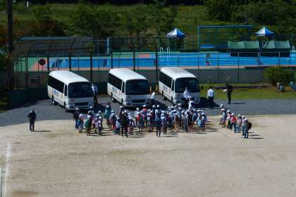 今日、2年生、3年生、6年生はささゆりの里へ校外学習です。