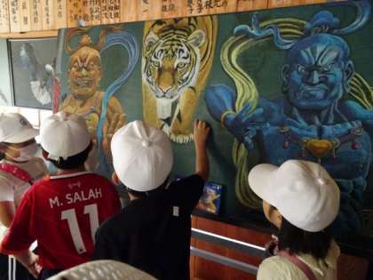 子どもたちが、チョークで描くのかと聞いたところ、「このクレヨンだよ」と見せてくださいました。