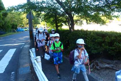 今朝の登校の様子です。 今日もさわやかな青空です。