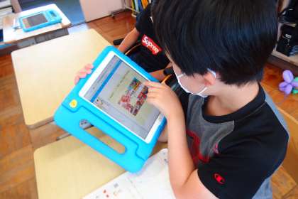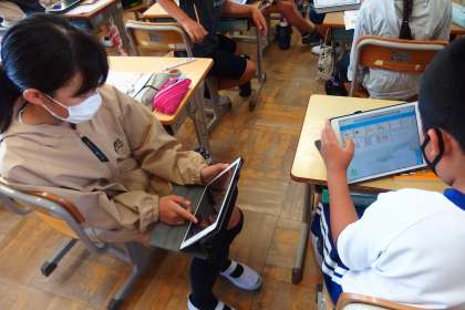 6月8日の東広瀬小学校(13) 公開日 2022/06/09 更新日 2022/06/09 活動の様子 5年生の英語の授業です。 事前にタブレットを使って準備していたスピーチ原稿をもとに、友だちと会話練習をしているところです。