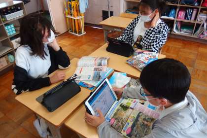 6月9日の東広瀬小学校(36) 公開日 2022/06/09 更新日 2022/06/09 活動の様子 6年生の社会の授業です。 タブレットの発表ノートのペア機能を使って、意見を共有したり、考えを追加したりしていました。