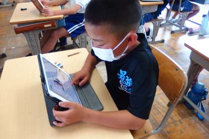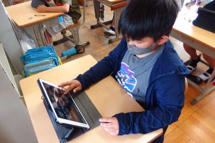 5年生の授業で、タブレットを使って知識の定着を図っているところです。