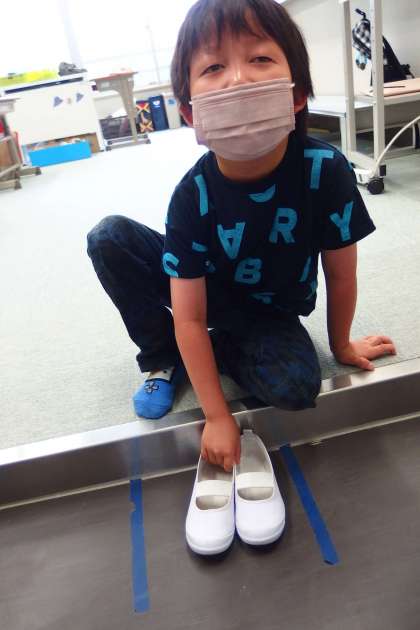 4組の児童が教室に入るときに、きちんとシューズをそろえることができて、ほめてもらえました。