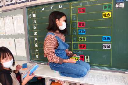 明日の授業参観に備えて準備をする5年生。