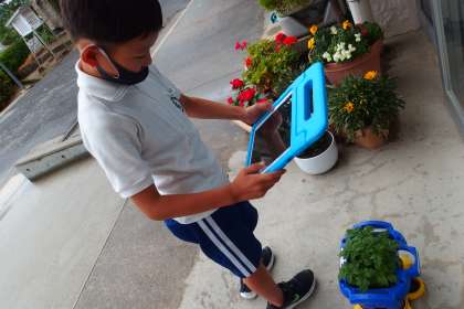 植物の成長の様子をタブレットで写真を撮って日々記録しています。