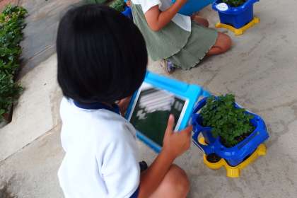 植物の成長の様子をタブレットで写真を撮って日々記録しています。