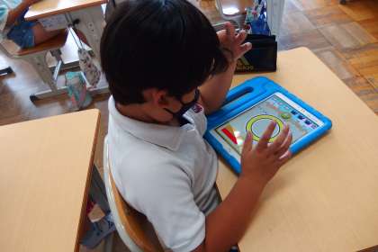 タブレットを使って、時間、時刻の知識の定着を図っています。