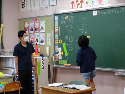 6月15日授業参観9 公開日 2022/06/17 更新日 2022/06/17 学校行事 繰り下がりのあるひき算の筆算は、いろんなパターンが出てくるため、考えることがたくさんあるのです。2年生は、一生懸命考えていました。