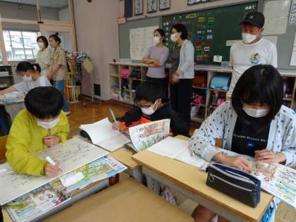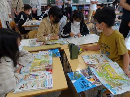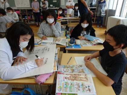 6年生は、社会の学習でした。 資料を見て、縄文時代と弥生時代を比べて話し合っていました。