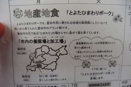 6月17日の東広瀬小学校(50) 公開日 2022/06/18 更新日 2022/06/18 お知らせ 今日は「愛知を食べる学校給食の日」でした。 豊田市の進める地産地食メニューでもあり、豊田市産のブランド豚「とよたひまわりポーク」を使った豚丼でした。