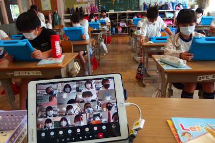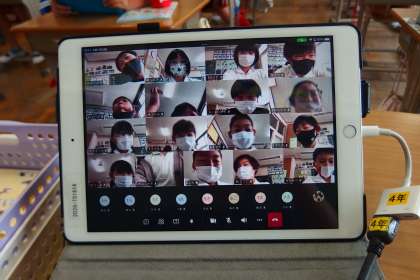 タブレットのアプリを使ってオンライン会議の練習をしました。