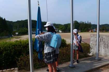 旗の掲揚をしてくれている今週の週番のみなさんです。