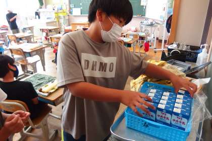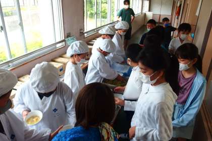 5年生の給食の配膳の様子です。