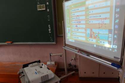 3年生の算数です。 タブレットから提示した問題を解いています。