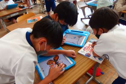算数の「線対称」を復習できるアプリをタブレットで使っている4年生です。