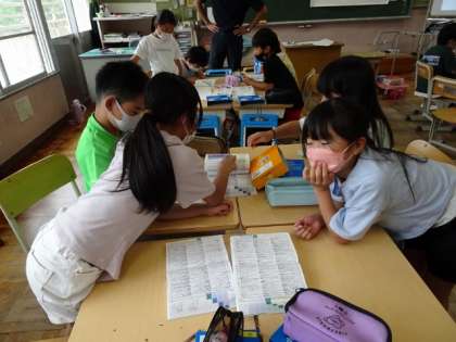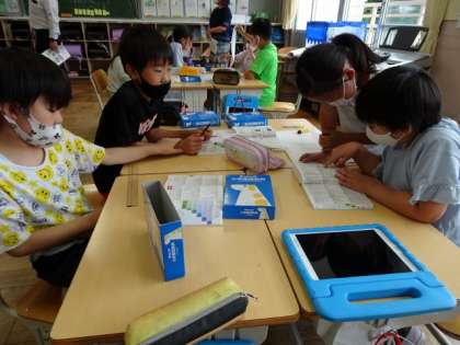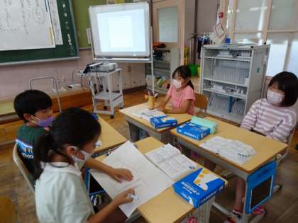 3年生は、国語で、国語辞典を活用しながらグループ学習をしていました。
