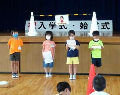 萩野小学校との交流で、会を進める司会者の係があります。