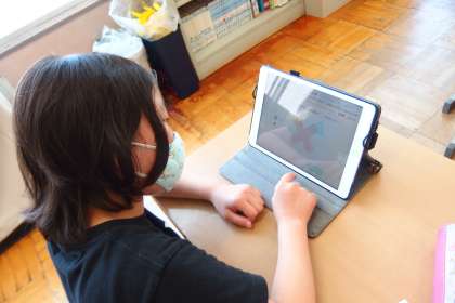 タブレットでデジタルドリル(Qubena)を使っている6年生です。