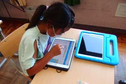 タブレットのアプリSKYMenuで発表ノートを使っている3年生です。