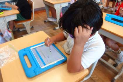 タブレットのアプリSKYMenuで発表ノートを使っている3年生です。