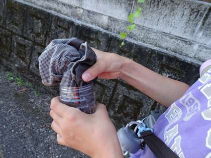 登校中にタオルに水分を浸し直す広瀬っ子もいました。