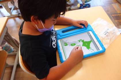 教育相談を待っている時間にタブレットのアプリで復習をしている3年生です。