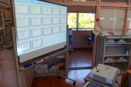 写真は、それぞれのグループが共有している様子やや一人一人の内容をスクリーンに映し出しているところです。