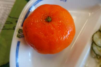 猛暑の日にはうれしい冷凍ミカンが出ました。