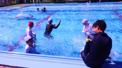 29日は1時間目に5年生と6年生がプールに入れましたが、2時間目以降はWBGTが高くなってしまい、ほかの学年は残念ながら水泳ができませんでした。
