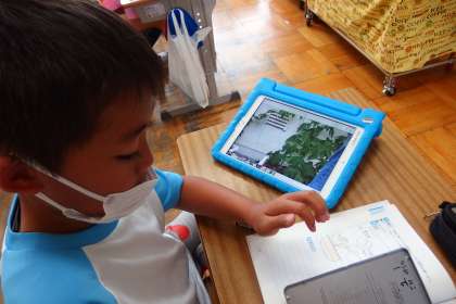 7月4日の東広瀬小学校(5) 公開日 2022/07/05 更新日 2022/07/05 活動の様子 4年生の理科の授業です。 栽培しているツルレイシ(ゴーヤ)をタブレットで撮影して、栽培日記をつけているところです。