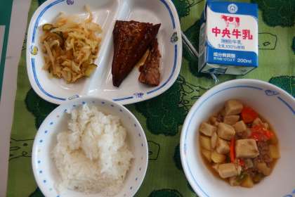 今日の給食のメニューです。 (すみません。仕事が立て込んでいるゆえ、一日遅れの更新です・・・)