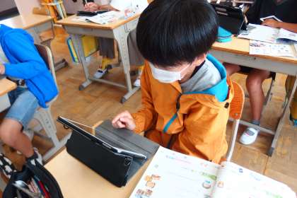 7月5日の東広瀬小学校(5) 公開日 2022/07/06 更新日 2022/07/06 活動の様子 6年生の英語の授業です。 ALTの先生に発表するスピーチを、タブレットの発表ノートで作成しています。