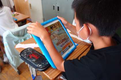 4年生がすきま時間を使って、タブレットで復習をしています。