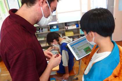 タブレットを見せながら、ALTの先生との会話に挑戦中です。