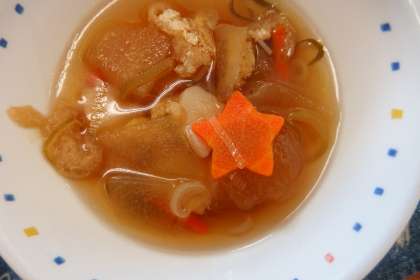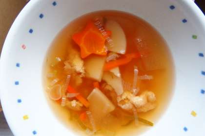 今日は七夕献立でした。 とうがん汁に「星形」のニンジンが入っていました。