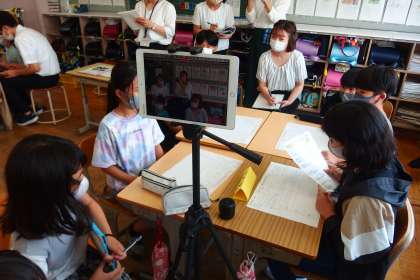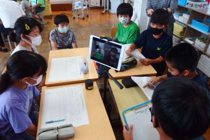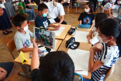 5年生の国語の授業です。 タブレットで話し合いの様子を録画して、振り返りに活用していきます。