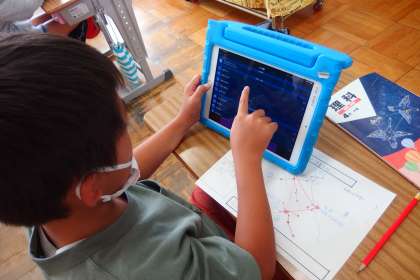タブレットの星座のアプリを使って、星の学習を進めていました。