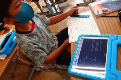 タブレットの星座のアプリを使って、星の学習を進めていました。