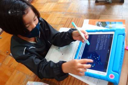 タブレットの星座のアプリを使って、星の学習を進めていました。