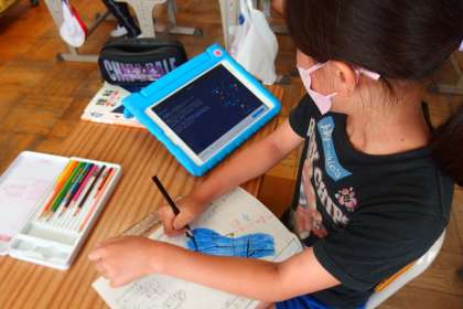 4年生の理科の授業です。 タブレットの星座のアプリを使って、星の学習を進めていました。