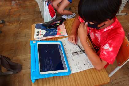 タブレットの星座のアプリを使って、星の学習を進めていました。