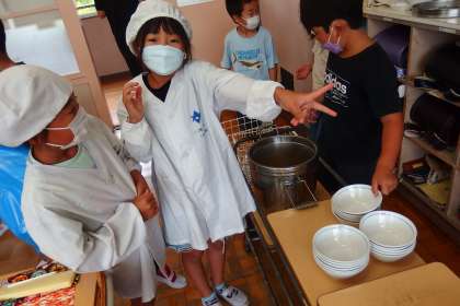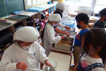 給食の配膳の様子です。