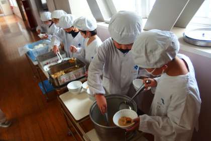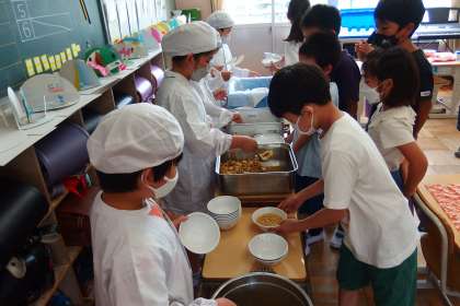 給食の配膳の様子です。