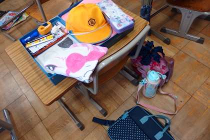 1年生の朝の様子です。 整理整頓が大変です。