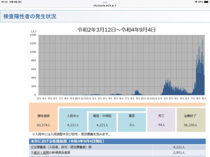 9月8日(木)の豊田市の新規感染者数は414人となっています。