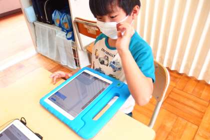生活単元の授業で、タブレットのアプリを使ってお絵描きをしている2組の子です。