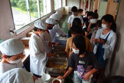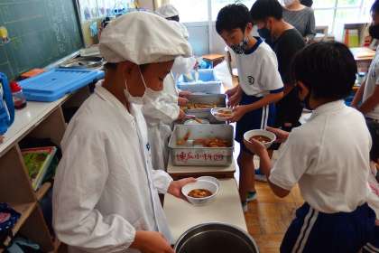 給食の配膳の様子です。