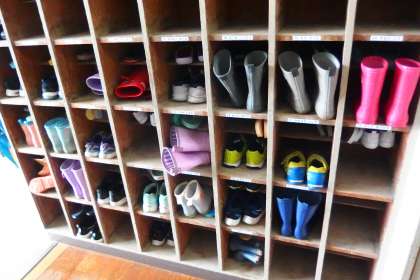 雨降りの一日でした。 下駄箱にも長靴が並びました。