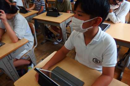 7月19日の東広瀬小学校(27) 公開日 2022/07/19 更新日 2022/07/19 活動の様子 タブレットのアプリ microsoft Teams を使って、オンライン出校日の練習(ビデオ会議)をする5年生です。 明日、保護者向けに方法を説明したプリントを持ち帰ります。 各家庭でのサポートをよろしくお願いします。