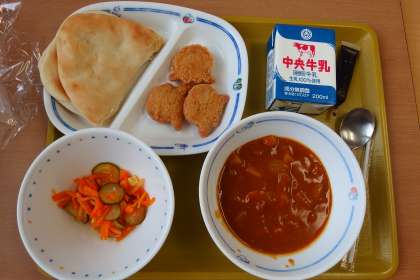 豊田市の学校給食の進めている「地産地食」のメニューでした。